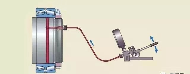 注油法的工作原理是:液壓油在高壓下通過油孔和油槽,注入軸承和軸徑之間的配合面,形成一層油膜。油膜將配合面分開,使得配合面之間的摩擦大幅減少。這種方法通常用于直接把軸承安裝在圓錐形軸徑上的情況。必須的油孔和油槽應(yīng)是整體軸設(shè)計(jì)的一部分。如果緊定套和退卸套,已加工有油孔油槽,這種方法也可用于將軸承安裝在緊定套或退卸套上。
